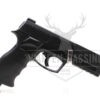 Der T4E TR 50 Gen2, Kal. .50 ist ein CO2-Revolver und wird als Neuware verkauft. T4E steht hierbei für „Training for Engagement“. Der CO2-Revolver ist primär für den Selbstschutz bzw. zur Home Defense gedacht. In der zweiten Generation hat der robuste Tactical Revolver viele funktionelle und design-technische Optimierungen erfahren. Die Verbesserungen äußern sich so zum Beispiel in der angepassten Griffstruktur mit geriffelten Griffstück, wodurch der Revolver durch die raue Oberfläche rutschfest in der Hand liegt und der Fiberoptik-Visierung. Aber auch das Quick-Piercing-System mit integriertem Druckablass ist eines der wichtigsten Überarbeitungen der zweiten Generation. Der Signalstift, welcher deutlich sichtbar und fühlbar ist, signalisiert die Einsatzbereitschaft der Waffe und die Schraube auf der Griffunterseite sorgt durch eine 90°-Drehung für den restlichen Druckablass. Die Abzugzüngelsicherung verhindert eine ungewollte Schussabgabe. Die angebrachte Picatinny-Schiene ermöglicht die Montage von Leuchtpunkt-Visieren. Der T4E TR 50 Gen2 Revolver ist des Weiteren mit den restlichen T4E Systemteilen kompatibel. Die Trommelkapazität beträgt 6 Schuss und es können T4E Roundballs und Precisionballs im Kaliber .50 geladen werden. Die 12g CO2 Kapsel ist unten am Griff angebracht und kann mit einem leichten Schlag auf den Knopf angestochen werden. Eine herkömmliche 12g Kapsel reicht für ungefähr 18 Schuss.